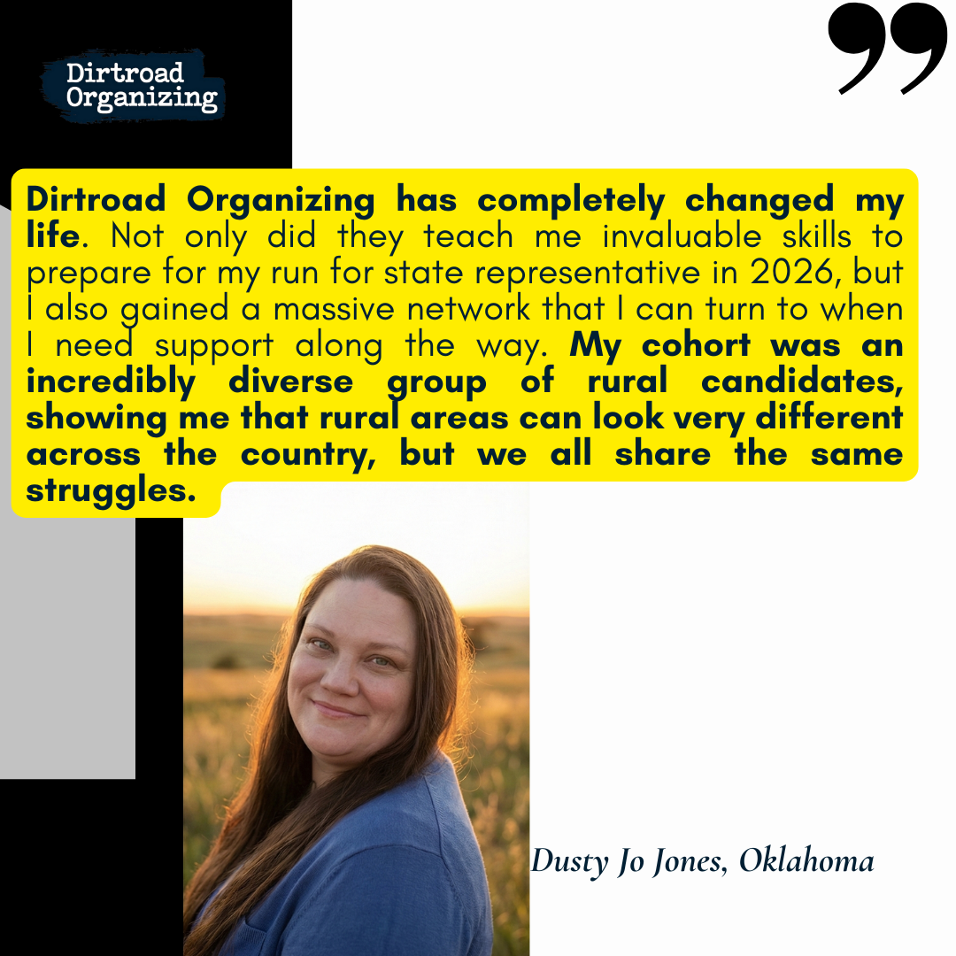 To date, we have trained 145+ rural leaders from 35 states, and over 40 Dirtroaders have been on the ballot.